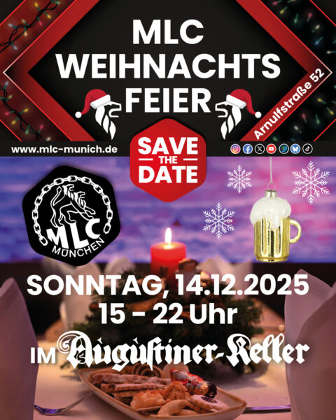 MLC Weihnachtsfeier Nur mit Anmeldung Zur Anmeldung Im Saal des Augustiner Keller Glühweinempfang Reichhaltiges kaltes und warmes Buffet Getränke gehen auf eigene Kosten.