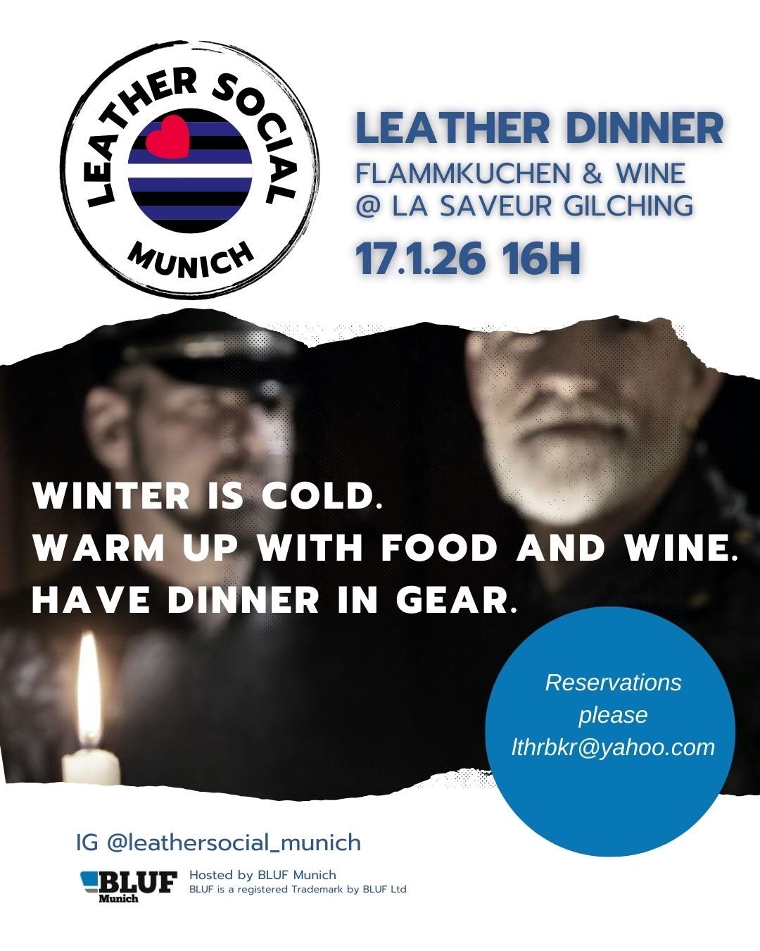 {:de}2026 steht vor der Tür! BLUF München wünscht dir, dass deine Lederträume wahr werden – und dass du viele Gelegenheiten findest, deine Leidenschaft zu teilen. Wir starten mit einem Leather Social PLUS Dinner am 17. Januar 2026 mit authentischem Flammkuchen und einem Glas Wein im Café La Saveur in Gilching. Dies ist bereits das zweite Mal, dass wir von Peter und Alexander, zwei bekannten Mitgliedern unserer Leder-Community, beherbergt werden. Freut euch auf herzliche Gastfreundschaft, einen fröhlichen Abend mit Freunden und […]